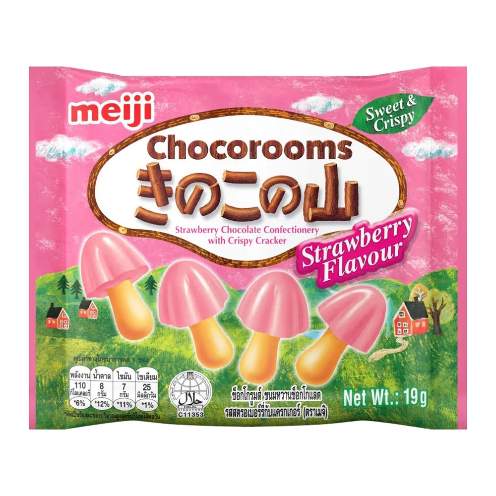 เมจิ ช็อกโกรูมส์ ขนมหวานช็อกโกแลต รสสตรอเบอร์รี่กับแครกเกอร์ 19 ก.