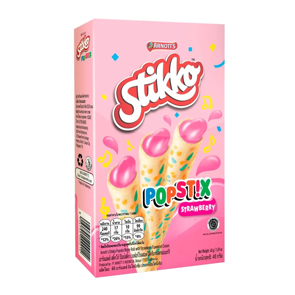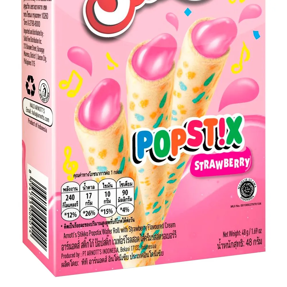 อาร์นอตส์ เวเฟอร์สติ๊กโก้ ป็อปสติ๊ก ครีมสตรอเบอรรี่ เวเฟอร์สติ๊กสอดไส้ครีม กลิ่นสตรอว์เบอร์รี่ รสชาติเข้มข้น อร่อยลงตัว<br />