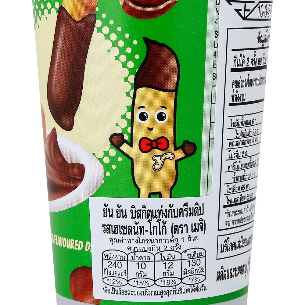 เมจิ ยัน ยัน ขนมปังแท่งอบกรอบกับครีมดิปรสเฮเซลนัท-โกโก้ 44 ก.