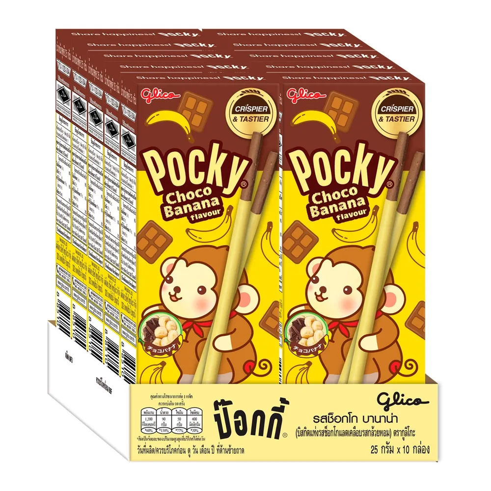 กูลิโกะ ป๊อกกี้ บิสกิตแต่งรสช็อกโกแลตเคลือบรสกล้วยหอม 25 ก. แพ็ค 10