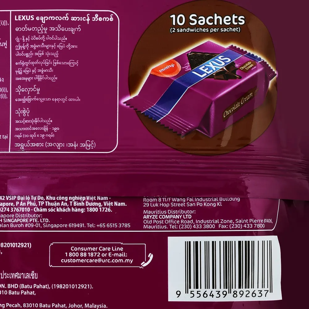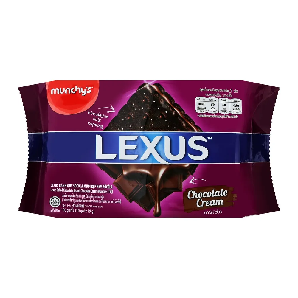<p>เล็คซัส แซนด์วิช ซอล์ทเท็ดช สอดไส้ครีม กลิ่นช็อกโกแลต 190 ก.<br />