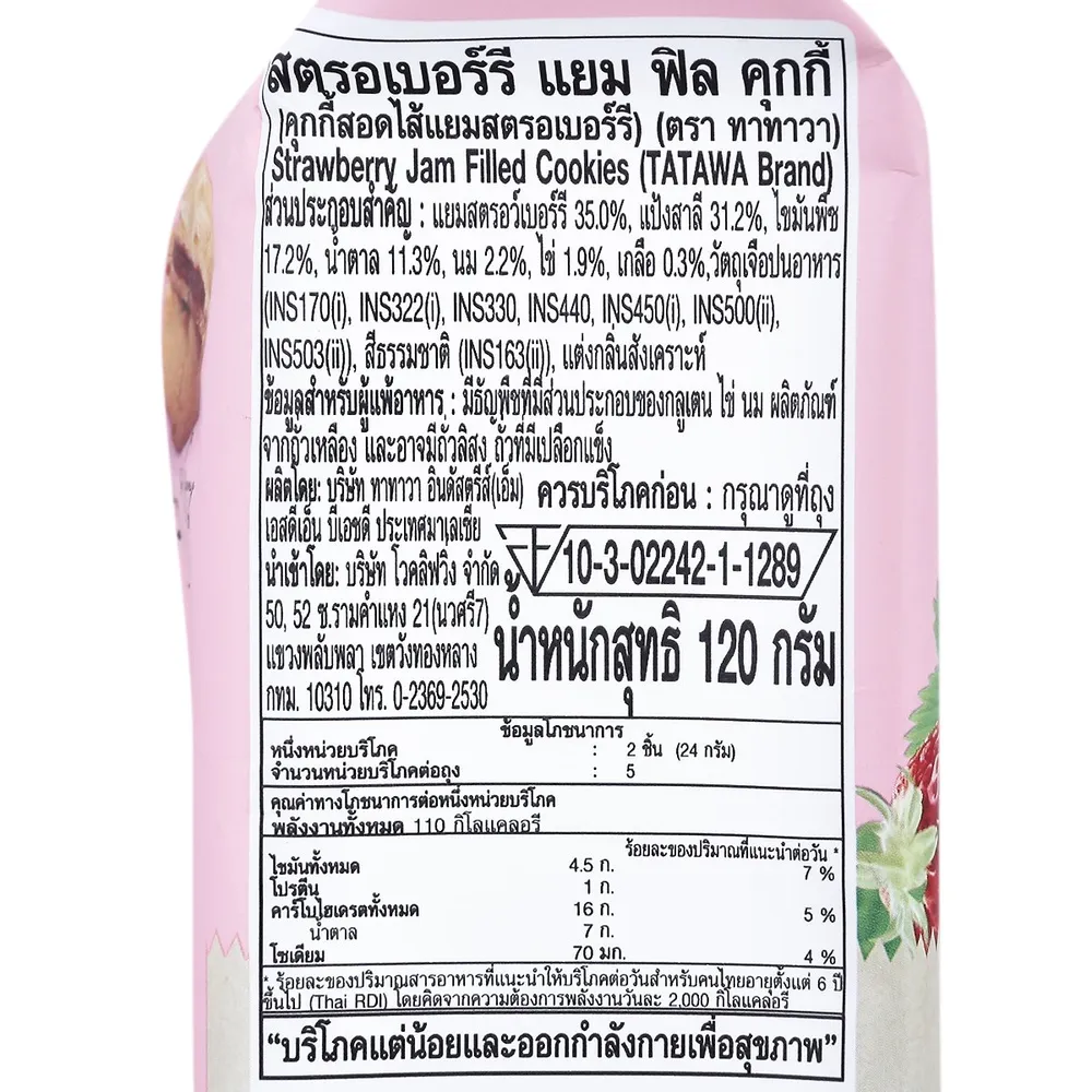 ทาทาวา คุ้กกี้สอดไส้แยมสตรอว์เบอร์รี่ 120 ก.