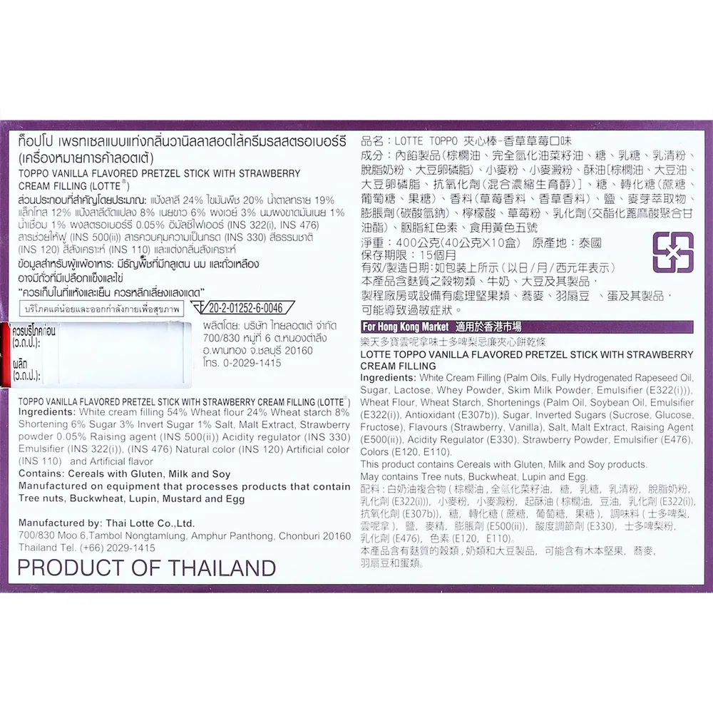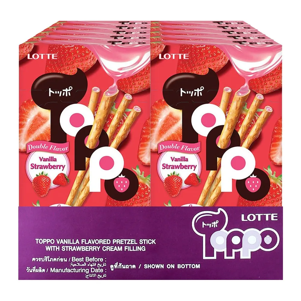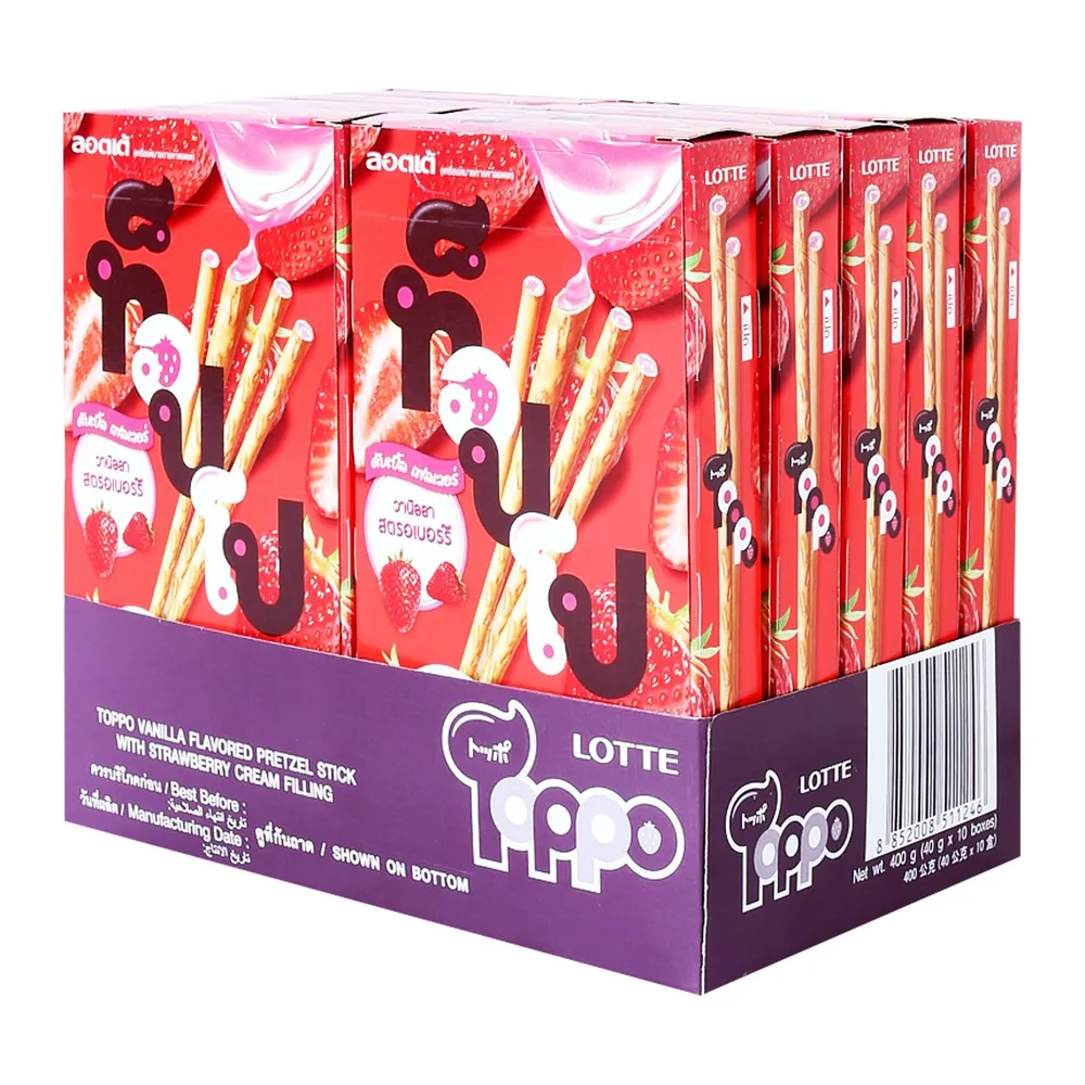 ลอตเต้ ท็อปโป เพรทเซลแบบแท่งกลิ่นวานิลลาสอดไส้ครีมรสสตรอว์เบอร์รี 40 ก. แพ็ค 10