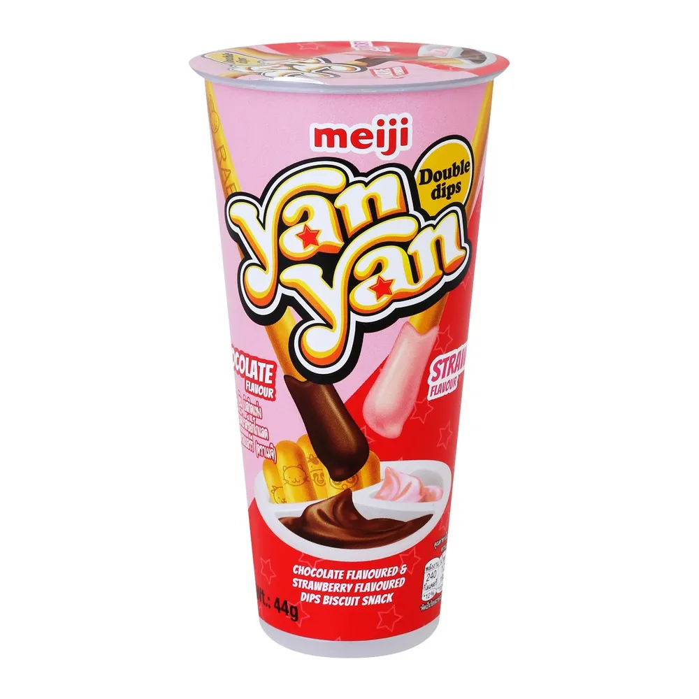 <p>เมจิ ยัน ยัน ขนมปังแท่งกับครีมรสช็อกโกแลตและสตรอเบอร์รี่ 44 ก.<br />