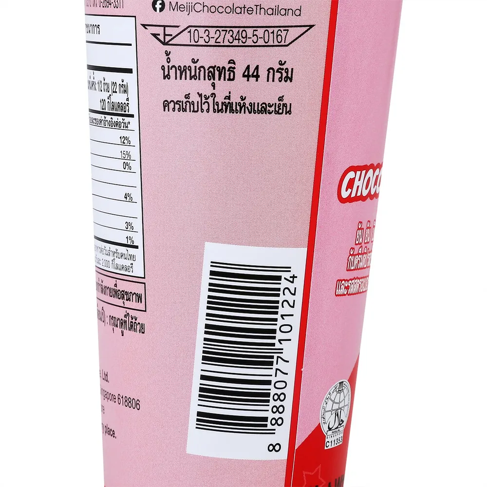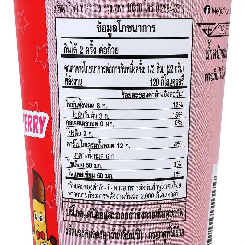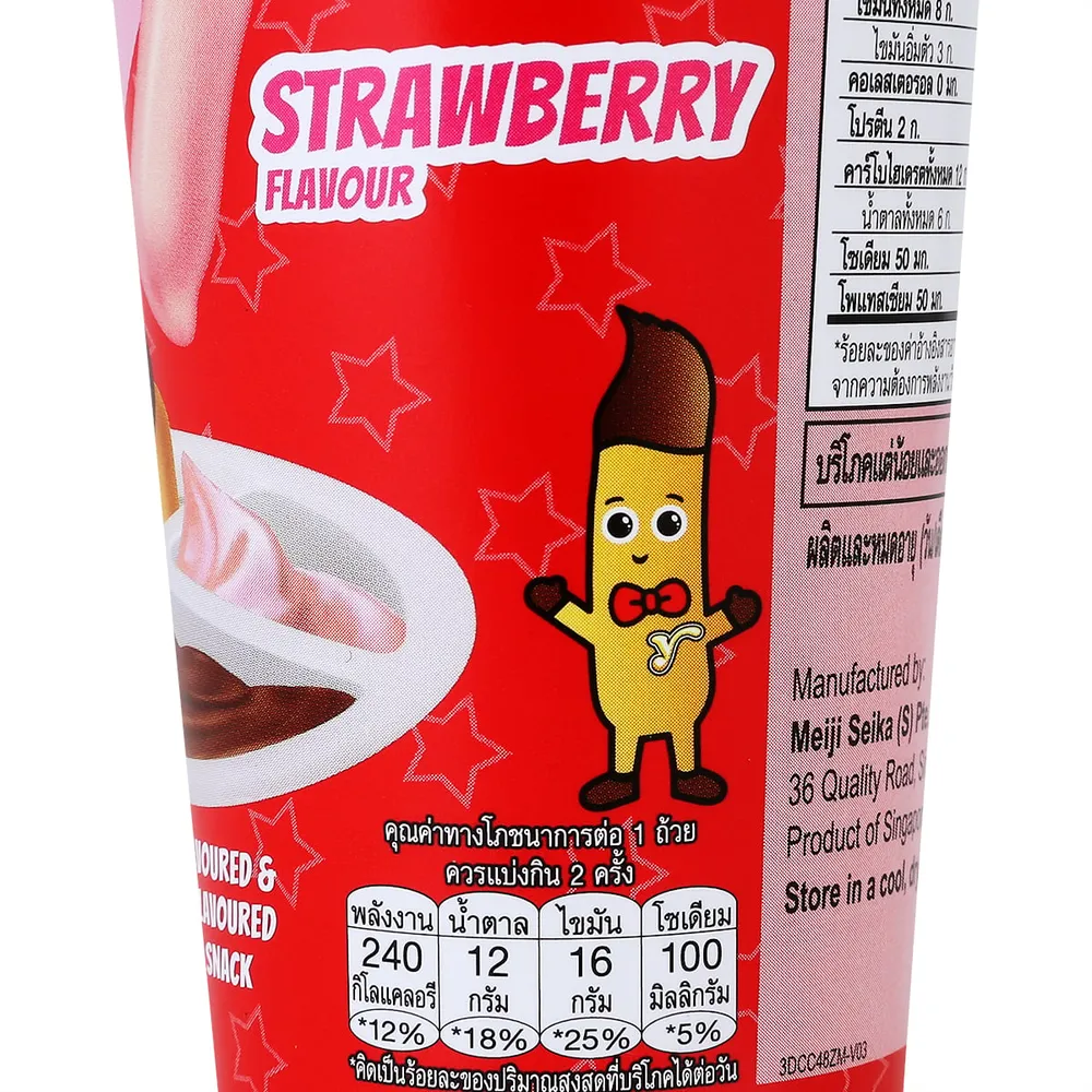 เมจิ ยัน ยัน ขนมปังแท่งกับครีมรสช็อกโกแลตและสตรอว์เบอร์รี่ 44 ก.