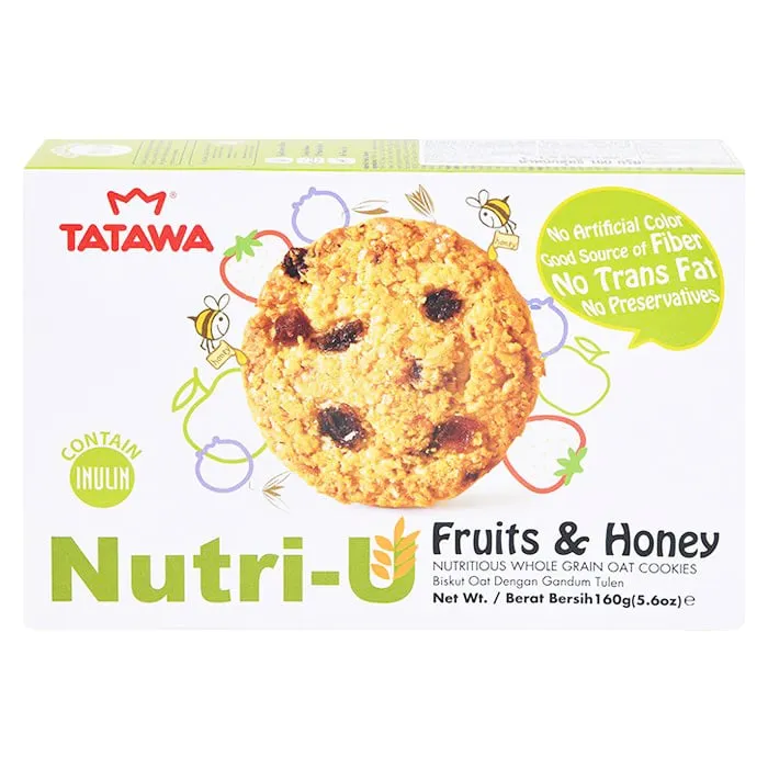 ตาตาวา นิวทริ-ยู คุกกี้โฮลเกรนผสมผลไม้และน้ำผึ้ง 180 ก.