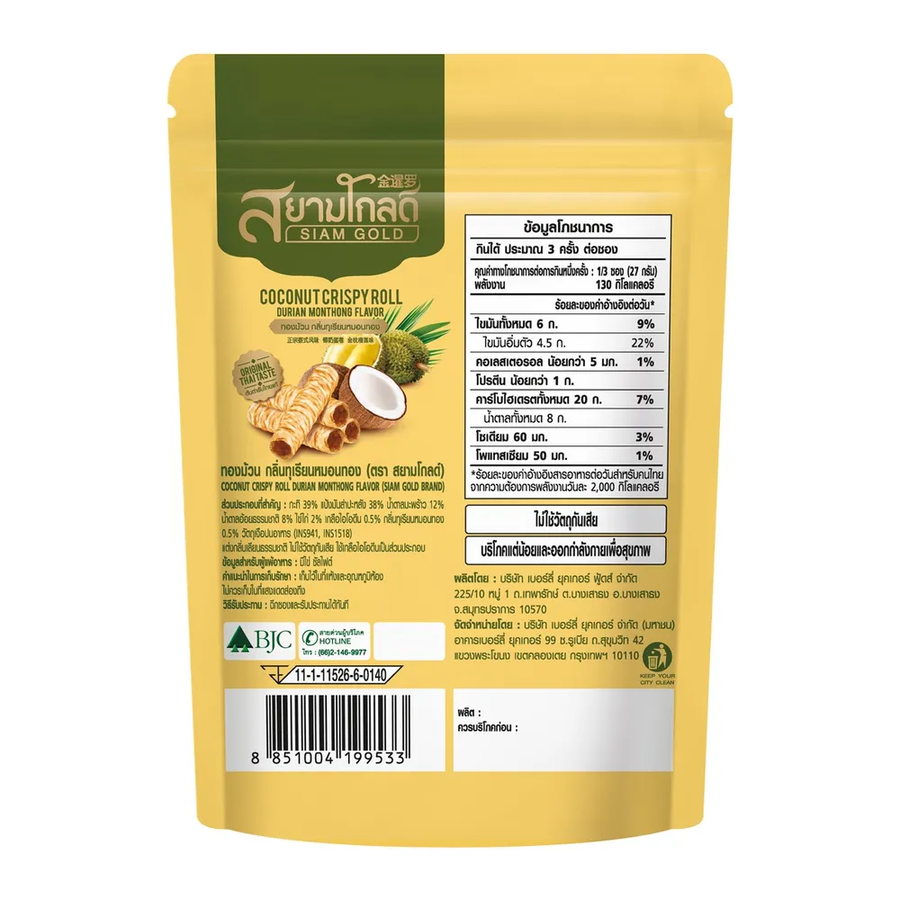สยามโกลด์ ทองม้วน กลิ่นทุเรียนหมอนทอง 80 ก.