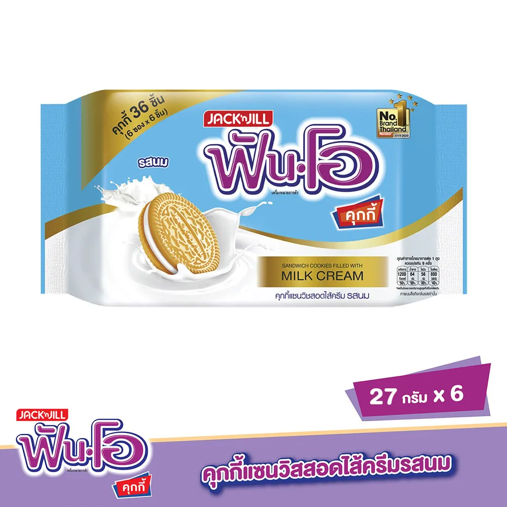 ฟันโอ คุกกี้แซนด์วิชสอดไส้ครีม รสนม 27 ก. แพ็ค 6