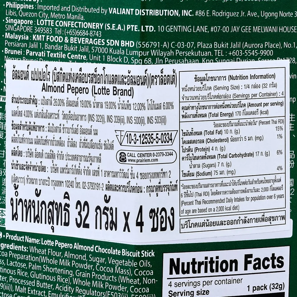 ลอตเต้ เปเปโร่ บิสกิตแท่งเคลือบช็อกโกแลตและอัลมอนด์ 128 ก.