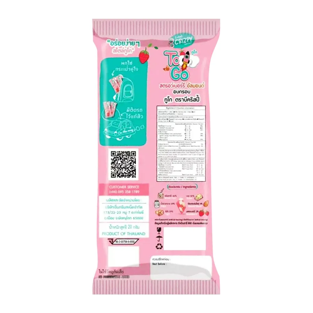 บีคริสปี้ ทูโก บราวนี่อบกรอบรสสตรอว์เบอร์รี 20 ก.