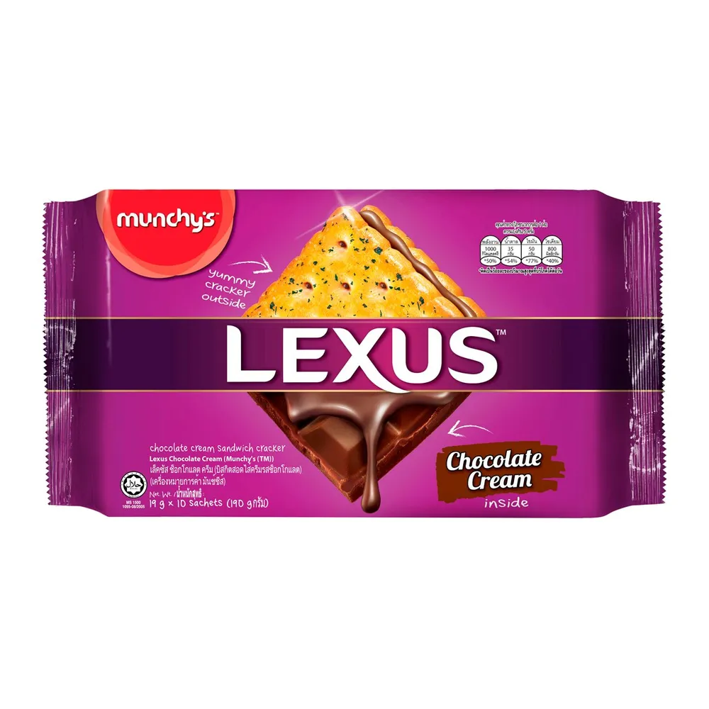 เอร็ดอร่อยไปกับ&nbsp;เล็คซัส ช็อกโกแลตครีม บิสกิตสอดไส้ครีมรสช็อกโกแล็ต&nbsp;การผสมผสานอย่างลงตัวจากแครกเกอร์อบกรอบสีเหลืองทอง เข้ากันได้ดีกับครีมสอดไส้ที่นุ่มละมุน ที่จะช่วยเปลี่ยนโมเมนต์ที่ธรรมดาให้เป็นโมเมนต์แห่งความสุข สามารถทานกับเครื่องดื่มแก้วโปรด พกไปทานที่ทำงาน ทานระหว่างทาง หรือจะนั่งอร่อยที่บ้านก็ได้<br />