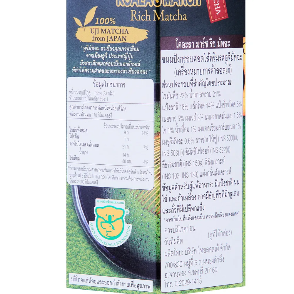- โคอะลา มาร์ช บิสกิตสอดไส้ครีมกลิ่นชาเขียว<br />