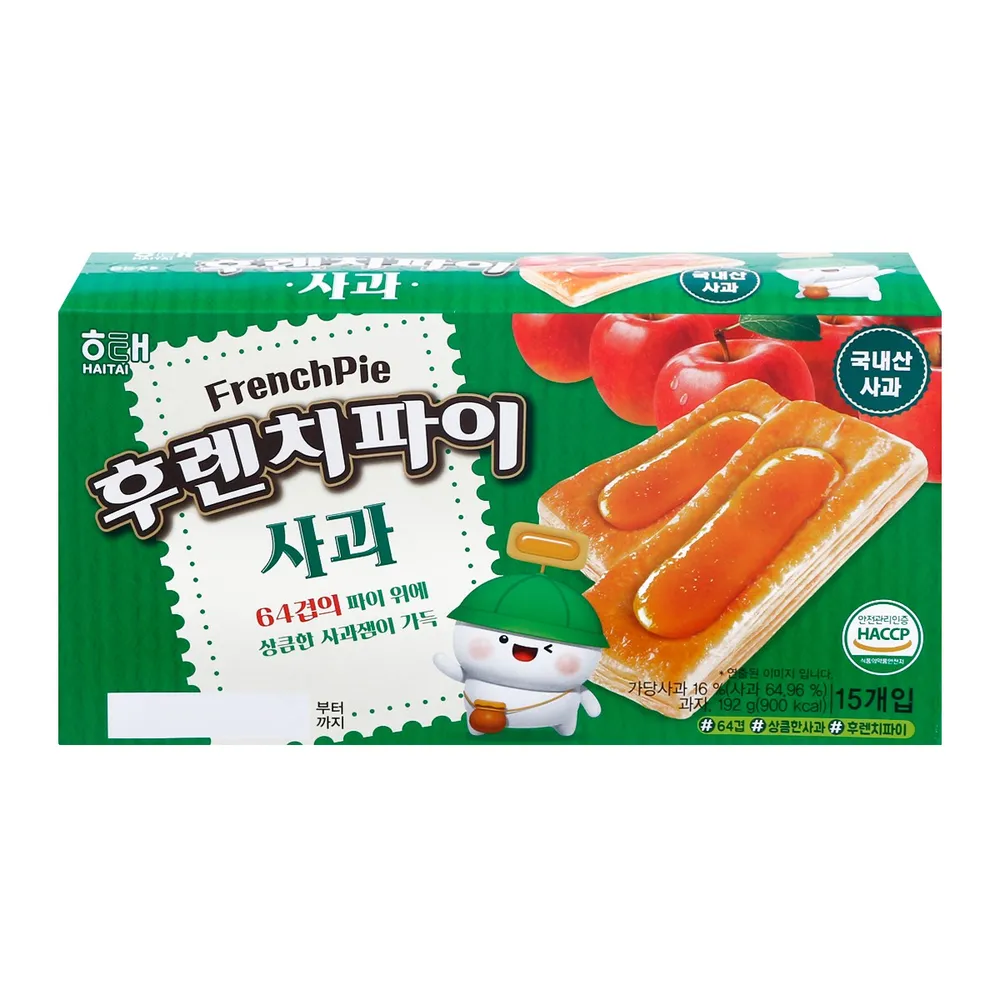 ไฮไท เฟรนช์ พาย แอปเปิ้ล ชิ้นพายแผ่นบางกรอบ 64 ชั้น ขนาดหนา 2.5 มล. รูปทรงอันเป็นเอกลักษณ์ ตรงกลางสอดแยมแอปเปิ้ล เนื้อเนียนละเอียดหอมอร่อยส่งตรงจากฝรั่งเศส หอมอร่อย นำเข้าจากประเทศเกาหลี ราคาไม่แพง แครกเกอร์กรอบรสชาติดั้งเดิม ตำหรับเกาหลี ผลิตจากประเทศเกาหลี ผ่านกระบวนการผลิตอย่างพิถีพิถัน ทำให้ได้แครกเกอร์ที่ หอม กรอบ อร่อย สดใหม่ทุกชิ้น<br />