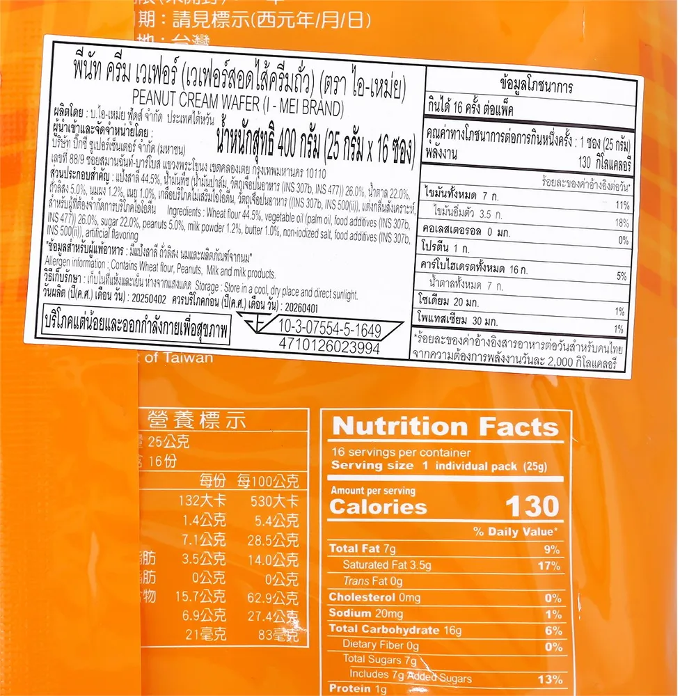 ไอ-เหม่ย พีนัท ครีม เวเฟอร์ เวเฟอร์สอดไส้ครีมถั่ว 400 ก.