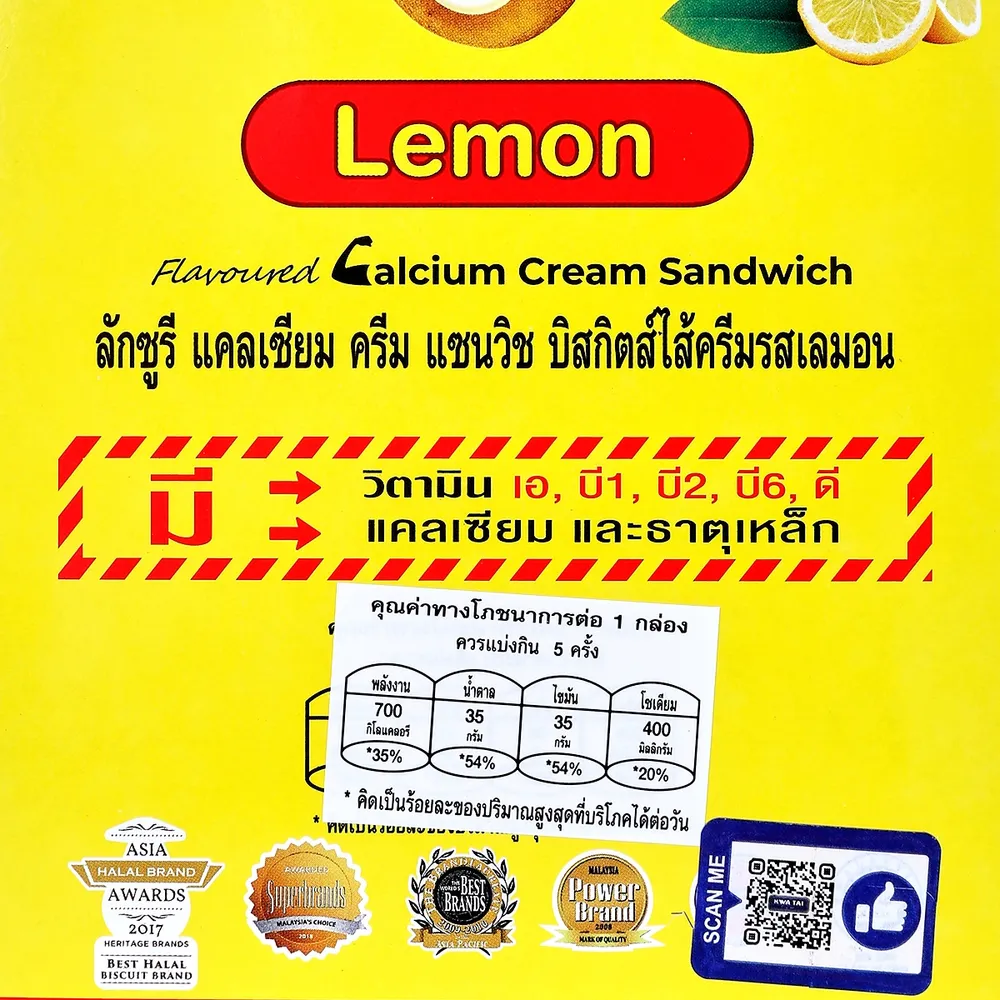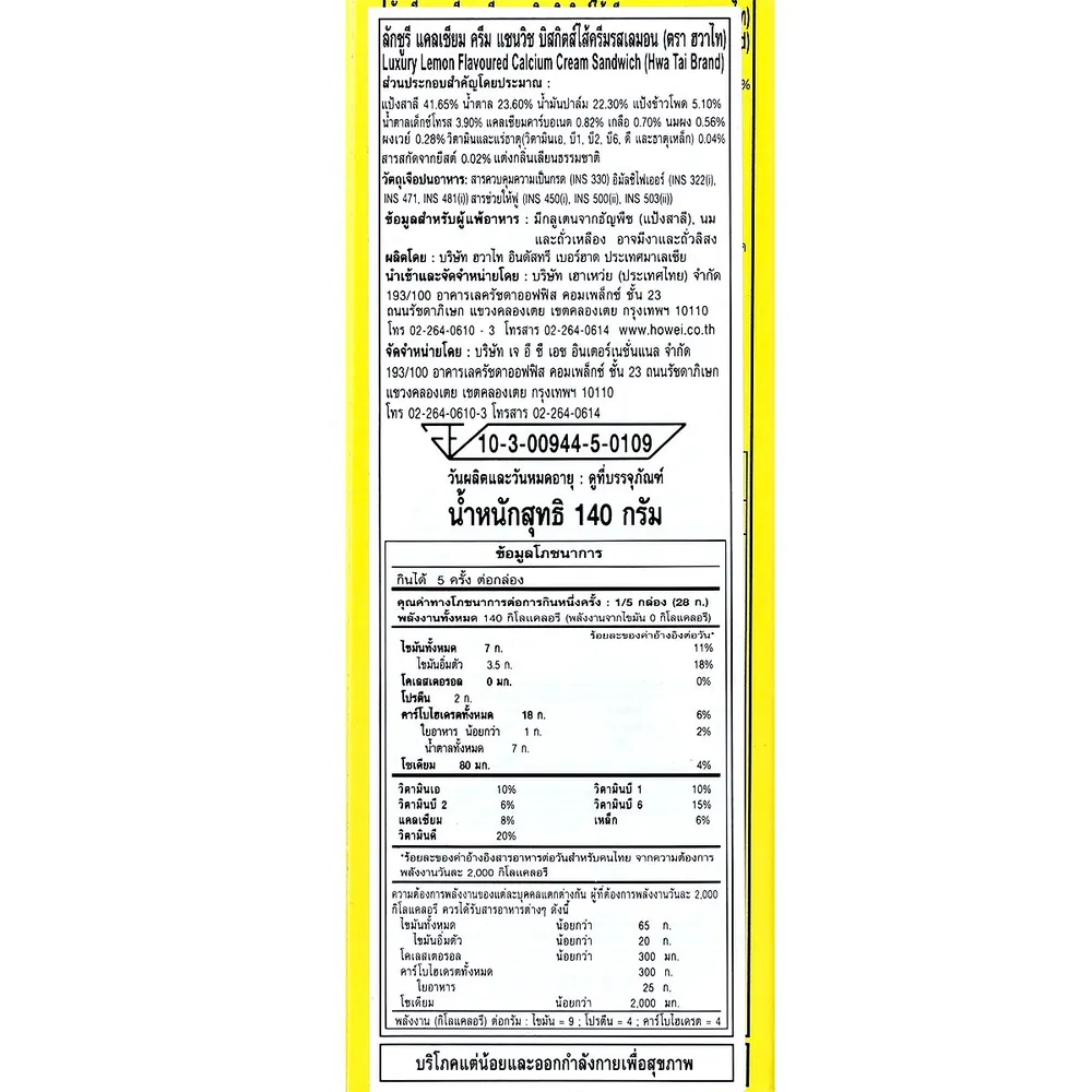 <p>ฮวาไท่ ลักซูรี แคลเซียม ครีม แซนวิช บิสกิต ไส้ครีมรสเลมอน<br />