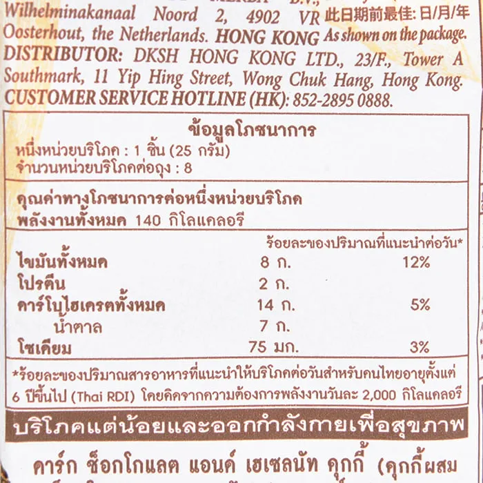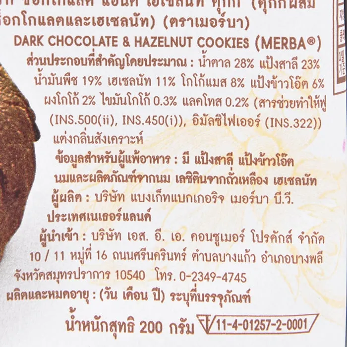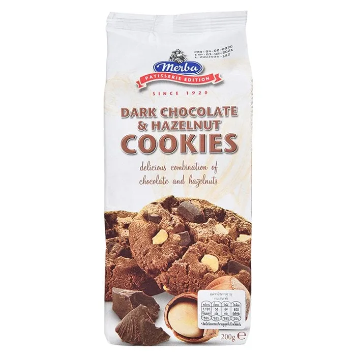 เมอร์บา คุกกี้ รสดาร์กช็อกโกแลตและเฮเซลนัท 200 ก.