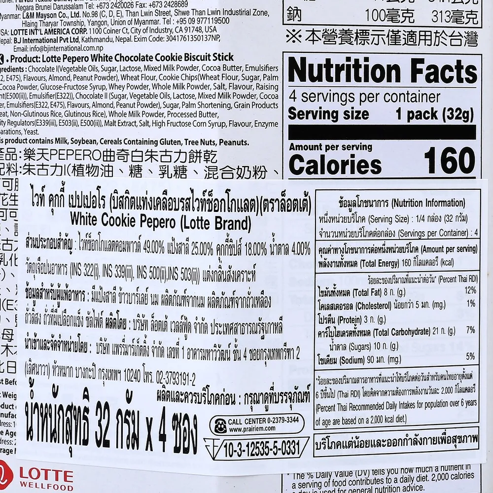 ลอตเต้ บิสกิตแท่งเคลือบ รสไวท์ช็อกโกแลตและคุกกี้ 128 ก.
