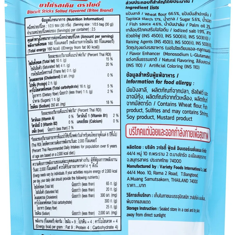 <p>ไบตี้ ขนมขาไก่ รสเค็ม 75 ก.<br />