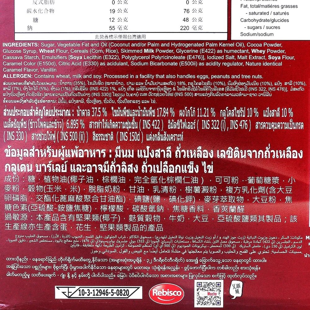<strong>ข้อมูลสำหรับผู้แพ้อาหาร</strong> : มีนม แป้งสาลี ถั่วเหลือง และอาจมีถั่วลิสง ถั่วเปลือกแข็ง ไข่<br />