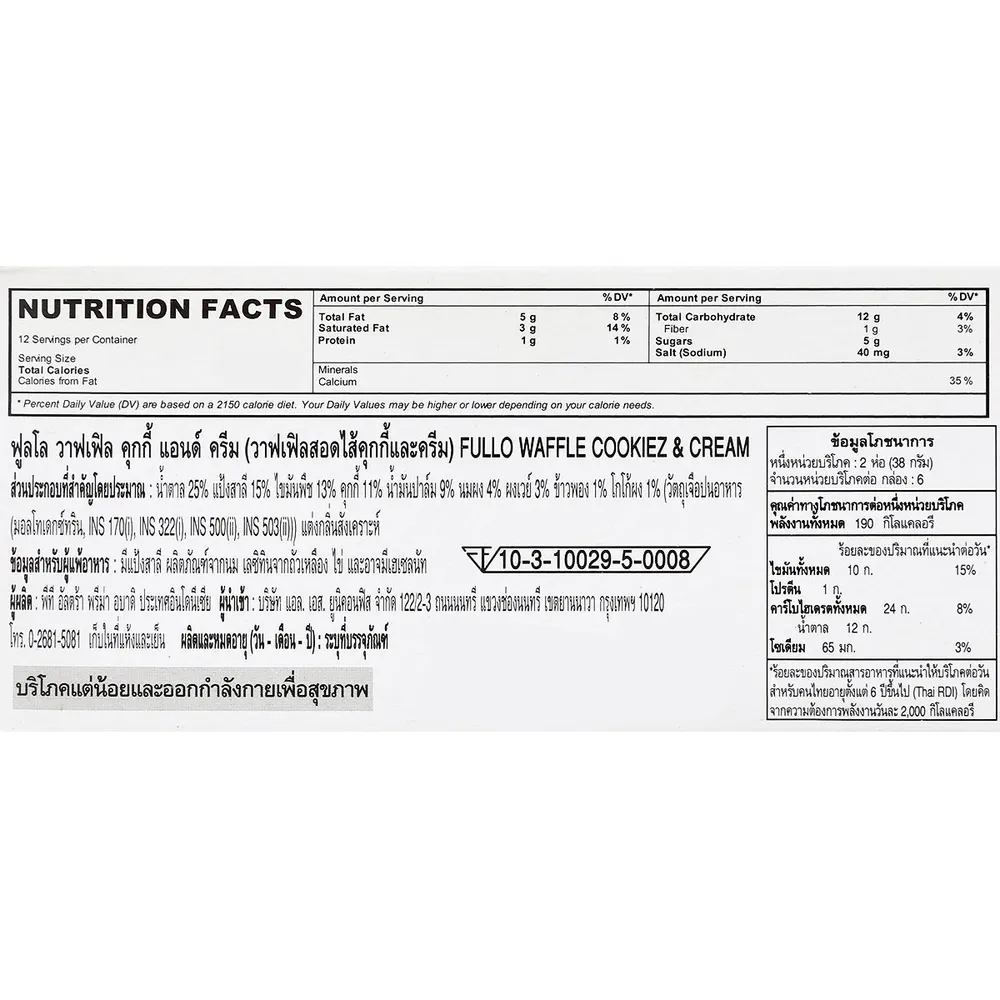 <p>ฟูลโล วาฟเฟิล คุกกี้แอนด์ครีม<br />