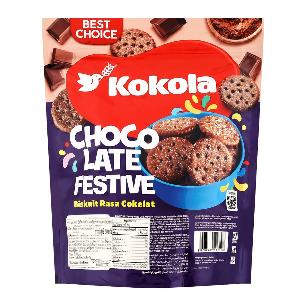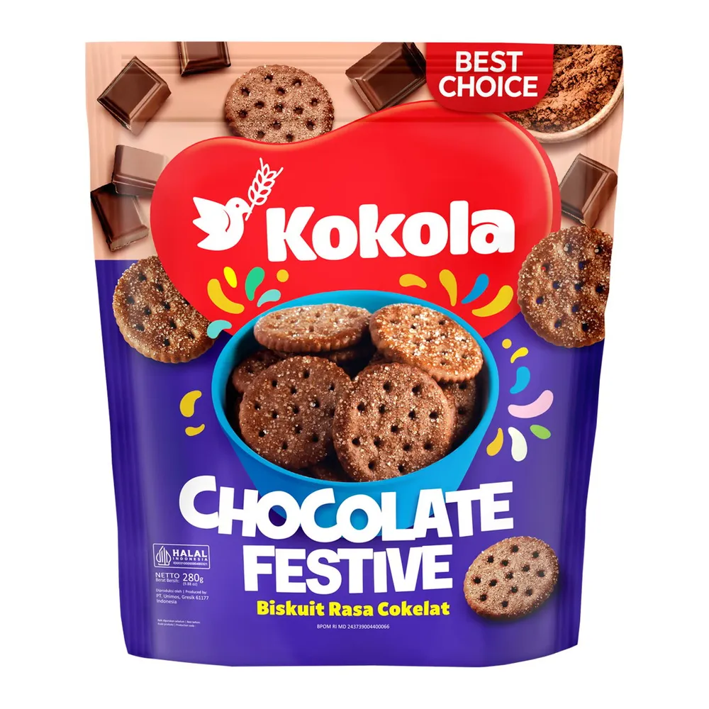Chocolate Festive จาก Kokola ขนมกรอบรสช็อกโกแลตเข้มข้น หอมหวานละมุนลิ้น จาก Kokola กรอบอร่อย เคี้ยวเพลิน พร้อมกลิ่นช็อกโกแลตแท้ที่ให้ความสุขทุกคำ<br />