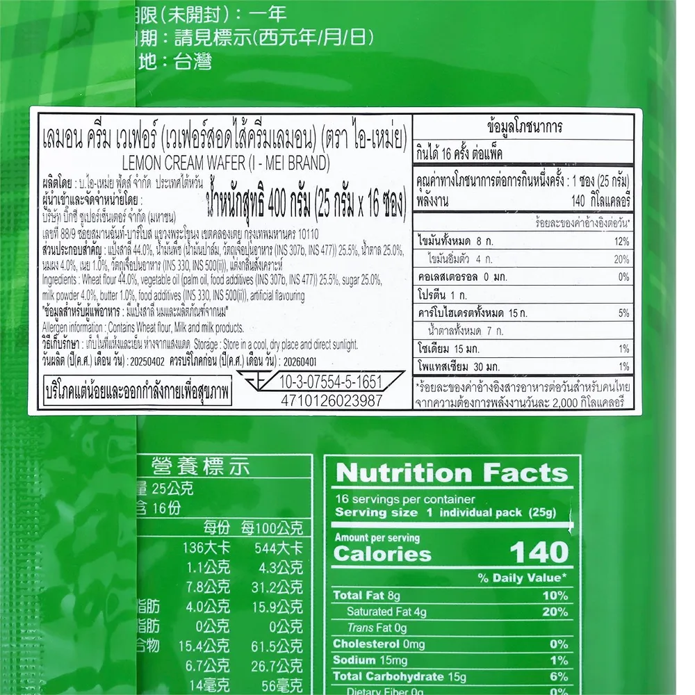 ไอ-เหม่ย เลมอน ครีม เวเฟอร์ เวเฟอร์สอดไส้ครีมเลมอน 400 ก.