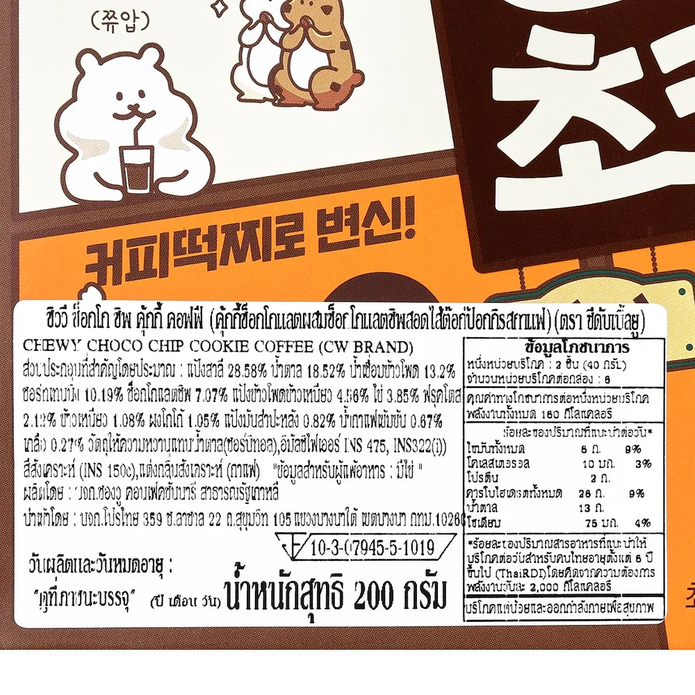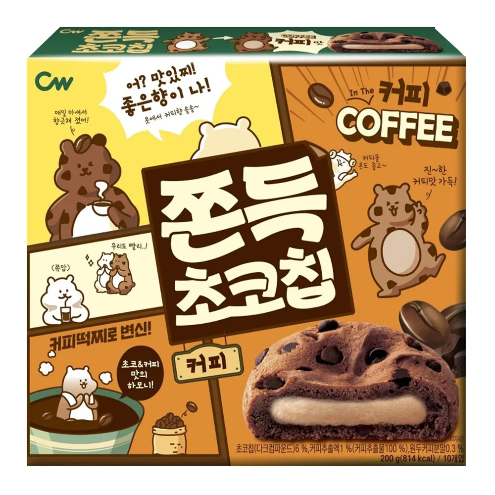 ซีดับเบิ้ลยู ชิววี่ช็อกชิพคอฟฟี่ คุกกี้รสกาแฟ ช็อกโกแลตชิพ หอมกลิ่นกาแฟเข้มข้น ได้รสขมนิดๆตัดกับรสหวานจากช็อกโกแลตชิพและแป้งต๊อกอย่างลงตัว<br />