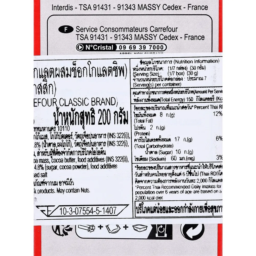 คาร์ฟูร์ คลาสสิก คุกกี้ส์ ทูท์ ช็อกโกลาต์ 200 ก.