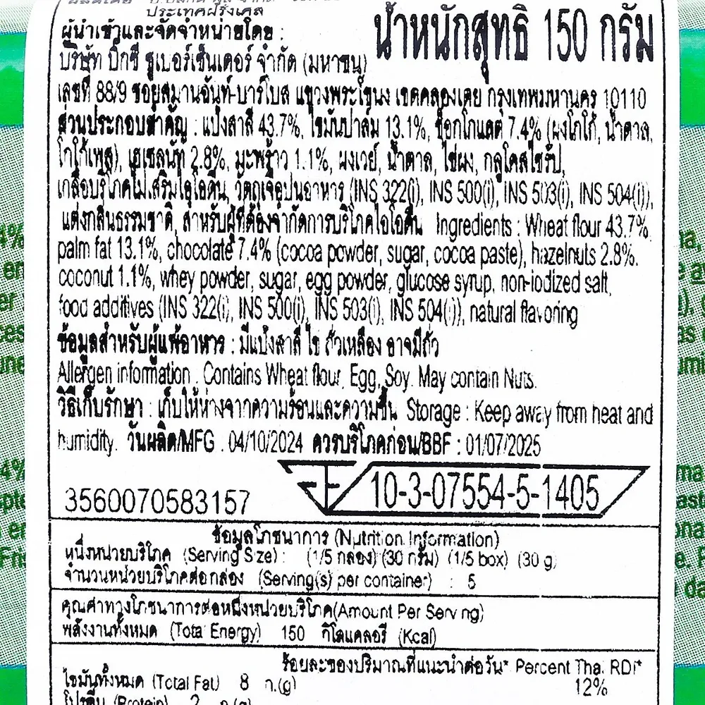 คาร์ฟูร์ ตาร์เตอแลต กูต์ ช็อกโกลาต์ นัวเซทส์ 150 ก.