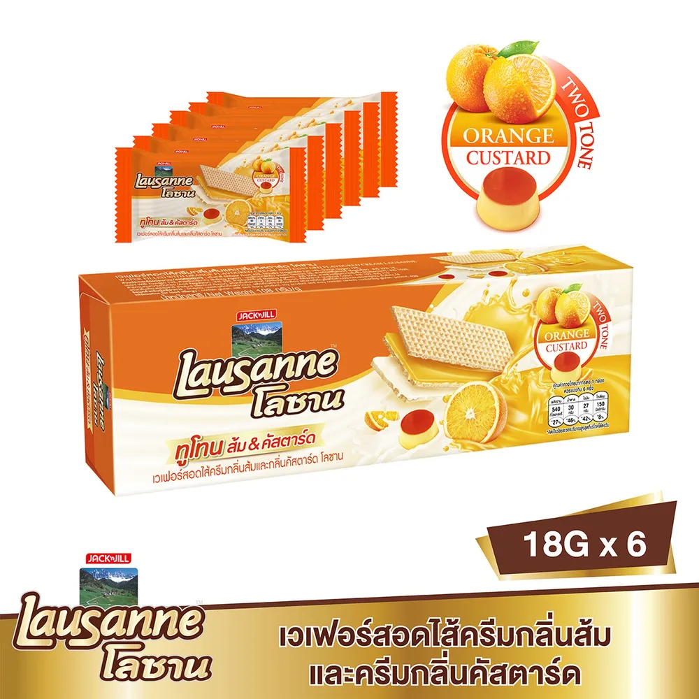 โลซาน ทูโทน เวเฟอร์สอดไส้ครีมส้มและคัสตาร์ด 18 ก. แพ็ค 6