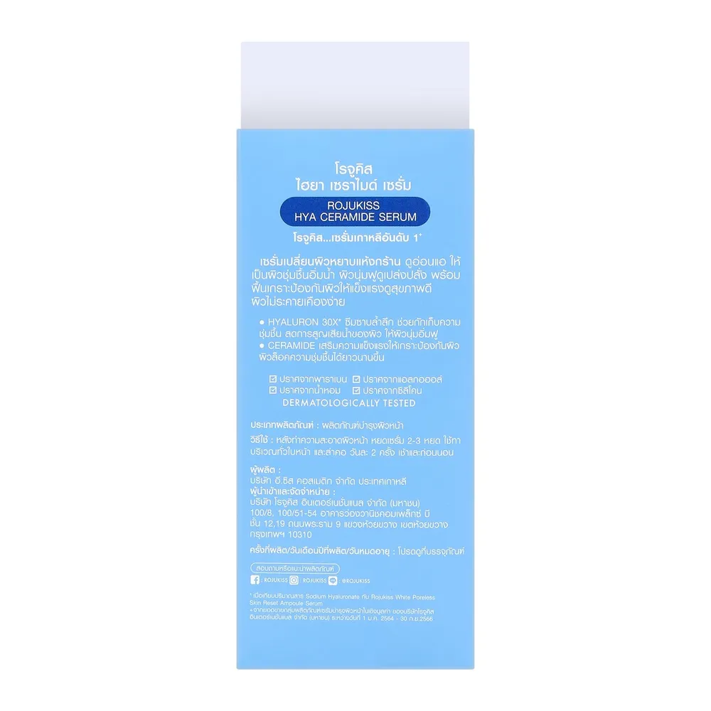 โรจูคิส ไฮยา เซราไมด์ เซรั่ม เปลี่ยนผิวหยาบแห้งกร้านให้ผิวชุ่มชื้น อิ่มน้ำ ผิวนุ่มฟู ดูเปล่งปลั่ง พร้อมฟื้นเกราะป้องกันผิวให้แข็งแรง ไม่ระคายเคืองง่าย พร้อมล็อคความชุ่มชื้นเนียนนุ่ม<br />