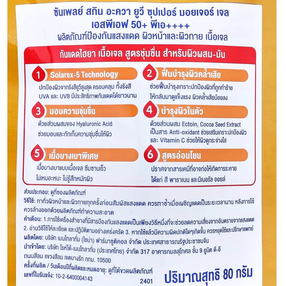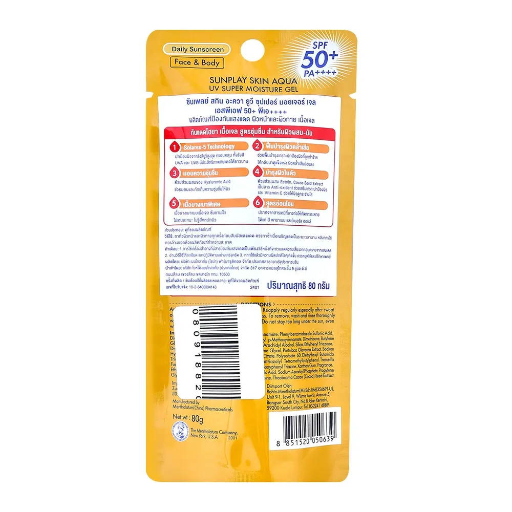 ซันเพลย์ สกิน อะควา ยูวี ซุปเปอร์ มอยเจอร์ เจล SPF50+ PA++++ 80 ก.