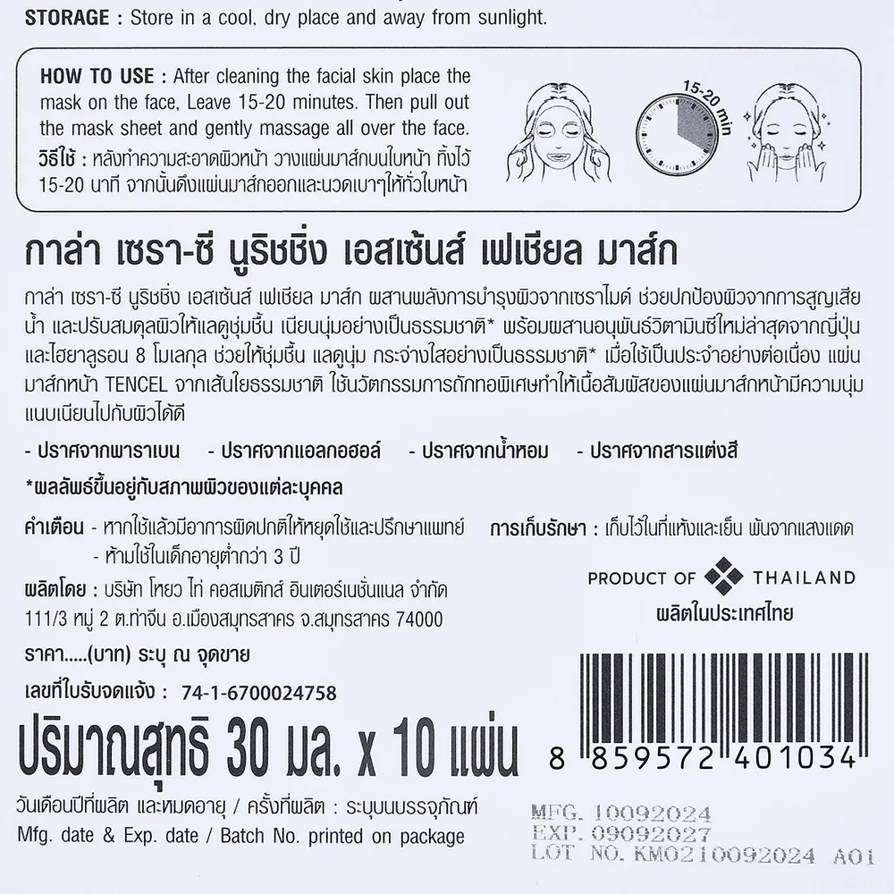 กาล่า เซรา-ซี นูริชชิ่ง เอสเซ้นส์ เฟเชียล มาส์ก 30 มล. x 10 แผ่น