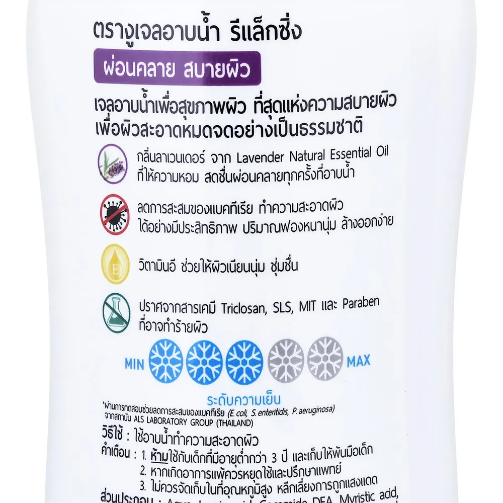 เจลอาบน้ำ ตรางู รีแล็กซิ่ง เจลอาบน้ำเพื่อสุขภาพผิว ที่สุดแห่งความสบายผิวเพื่อผิวสะอาดหมดจดอย่างเป็นธรรมชาติ ลดการสะสมของแบคทีเรีย 99.99%<br />
