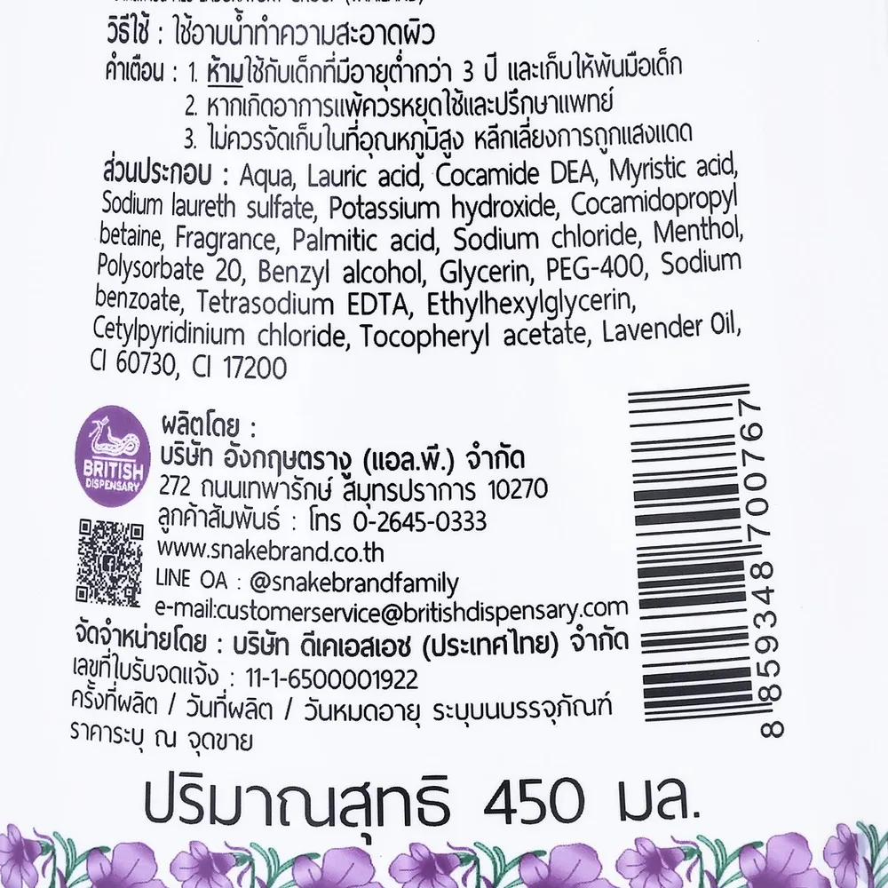 - เจลอาบบ้ำสีม่วงใส กลิ่นหอมสดชื่น ผ่อนคลายในแบบตรางู ด้วยสูตรเฉพาะ<br />