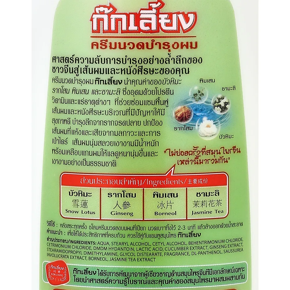 ศาสตร์ความลับการบำรุงของล้ำลึกของชาวจีนสู่เส้นผมและหนังศีรษะของคุณ ครีมนวดบำรุงผม ก๊กเลี้ยง นำคุณค่าของบัวหิมะ รากโสม พิมเสน และชามะลิ ซึ่งอุดมด้วยโปรตีน วิตามินและแร่ธาตุต่างๆ<br />