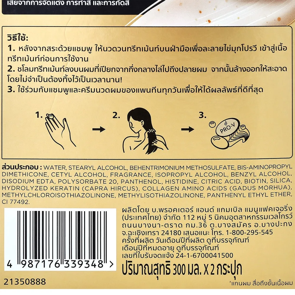 แพนทีน มิราเคิล อินเทนซีฟ ทรีทเม้นต์ Pro-V มิราเคิล ทรีทเมนต์สูตรเข้มข้นประกอบด้วยเม็ด&nbsp; Pro-V วิตามิน เอกลักษณ์ของแพนทีน ช่วยฟื้นบำรุงผมช็อตแห้งฟูอย่างเร่งด่วน 3 การดูแลเส้นผมที่เหนือระดับ เผยผมชุ่มชื้น นุ่มสลวยไม่พันกัน<br />