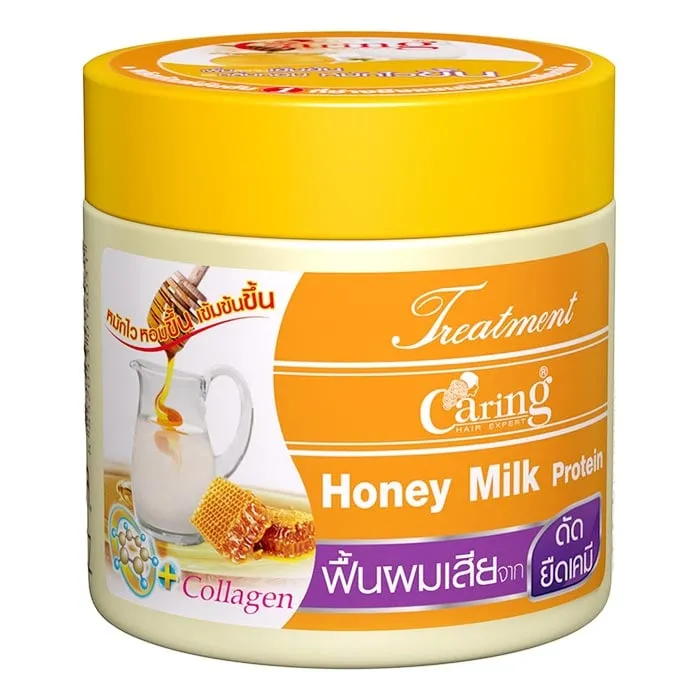 <p>แคริ่ง ทรีทเม้นท์ ฮันนี่มิลค์ 500 มล.<br /><br />บำรุงเส้นผมสูตรเข้มข้นพิเศษด้วยตัวคุณเอง สูตรฮันนี่ มิลค์ อุดมด้วยพลังธรรมชาติจากคอลลาเจนและน้ำผึ้ง&nbsp;ลดการแห้งเสียและบำรุงปลายผมตลอดทั้งวัน<br /><br />- ผมสุขภาพดี ดูมีชีวิตชีวา<br />- ฟื้นฟูผมเสียจากการ ดัด ยืด จากเคมี<br />- หมักไว หอมขึ้น เข้มข้นขึ้น <br />- นวดให้ทั่วศีรษะตั้งแต่โคนจรดปลายผม ทิ้งไว้ประมาณ 3-5 นาที แล้วล้างออกให้สะอาด <br /><br />