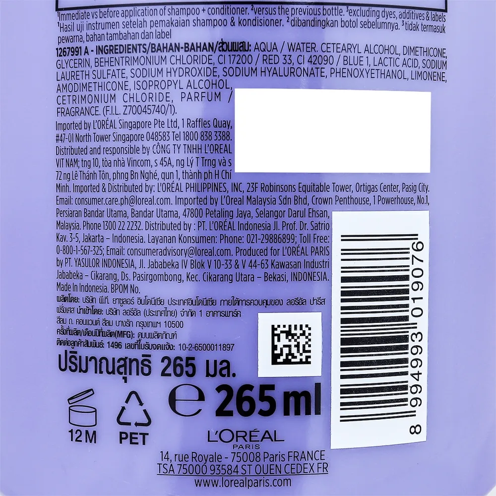 ลอรีอัล ปารีส เอลแซฟ ไฮยาลูรอน มอยซ์เจอร์ 72เอช มอยซ์เจอร์ ซีลลิ่ง คอนดิชันเนอร์ 265 มล.
