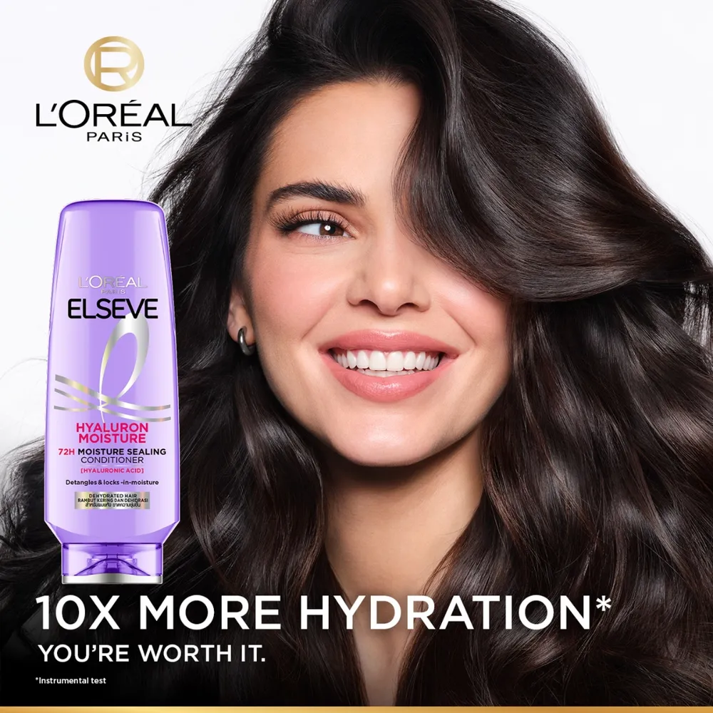 บำรุงผมด้วย ลอรีอัล ปารีส เอลแซฟ ไฮยาลูรอน มอยซ์เจอร์ 72เอช มอยซ์เจอร์ ซีลลิ่ง คอนดิชันเนอร์ ผลิตภัณฑ์ครีมนวดผมคุณภาพจากแบรนด์ ลอรีอัล ปารีส ที่ช่วยให้ผมนุ่มลื่น ชุ่มชื่น เหมาะสำหรับผมแห้ง และหยาบกระด้าง<br />
