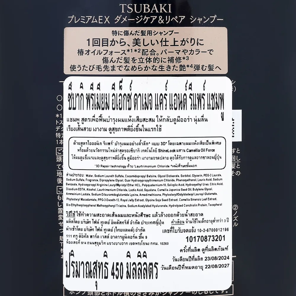 - ซึบากิ พรีเมียม อีเอ็กซ์ ดาเมจ แคร์ แอนด์ รีแพร์ แชมพู<br />
