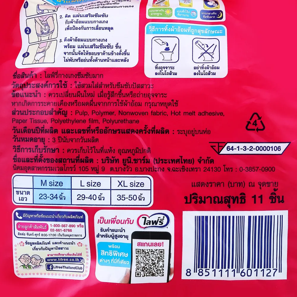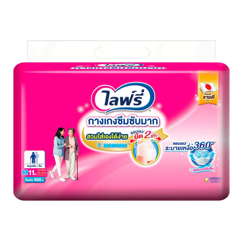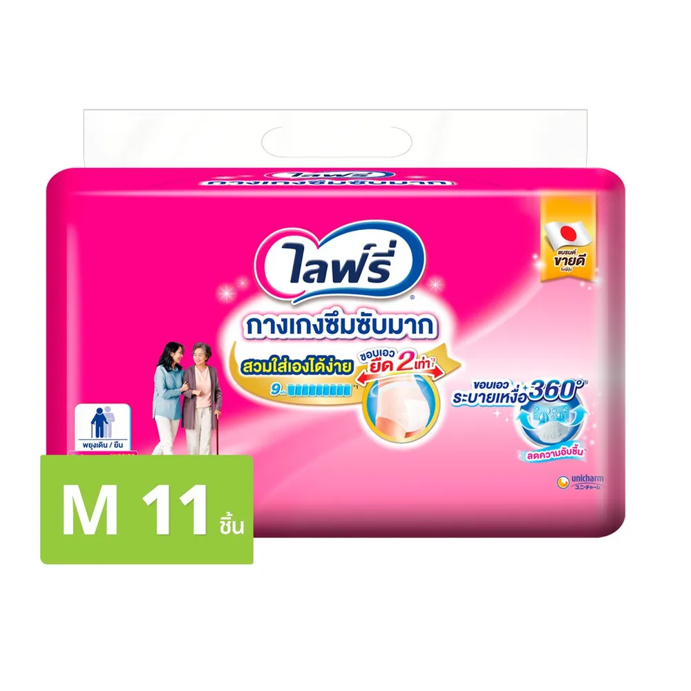 ไลฟ์รี่ ผ้าอ้อมผู้ใหญ่ กางเกงซึมซับ ไซส์ M 11 ชิ้น
