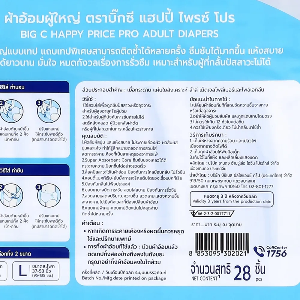 บิ๊กซี แฮปปี้ ไพรซ์ โปร ผ้าอ้อมผู้ใหญ่ ไซส์ M แพ็ค 28 ชิ้น
