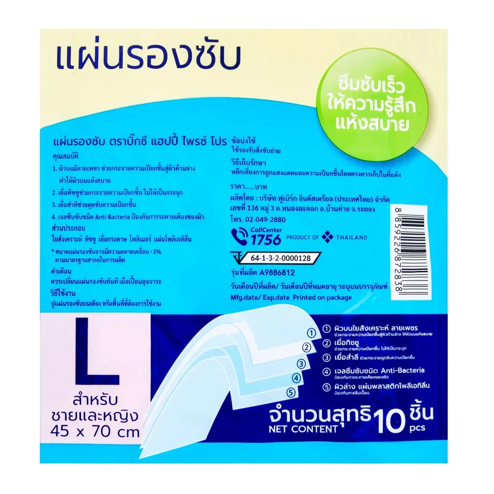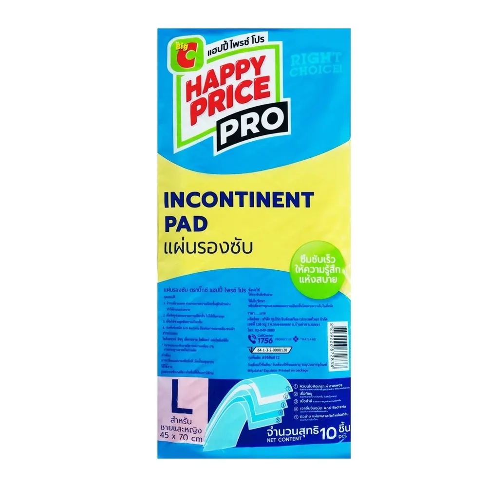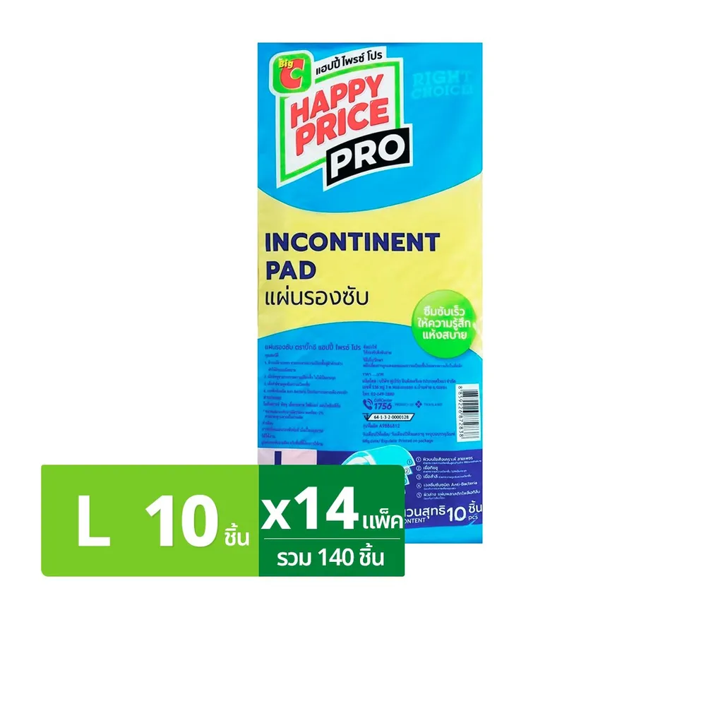 บิ๊กซี แฮปปี้ ไพรซ์ โปร แผ่นรองซับ สำหรับชายและหญิง ขนาด L (45 x 70 ซม.) 10 ชิ้น แพ็ค 14