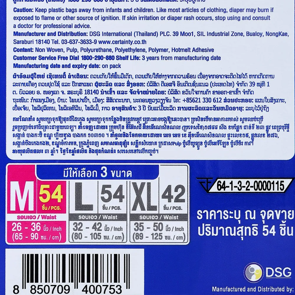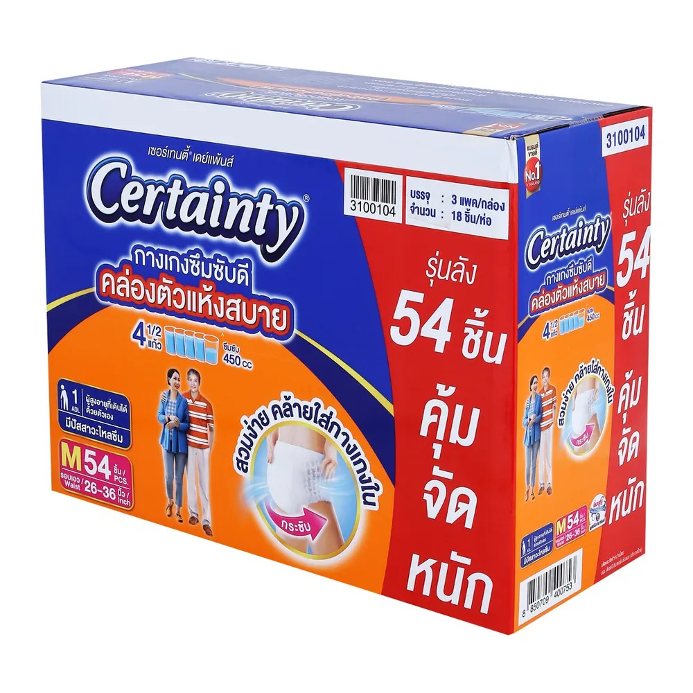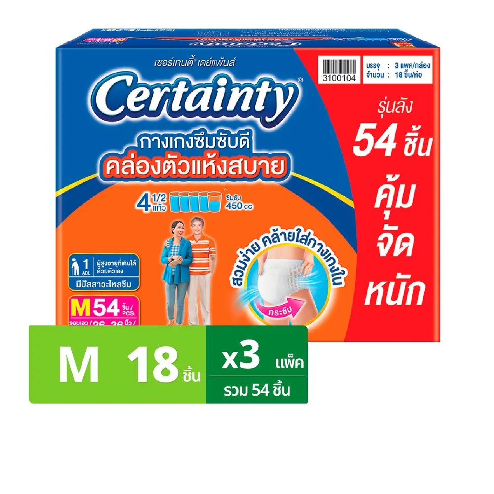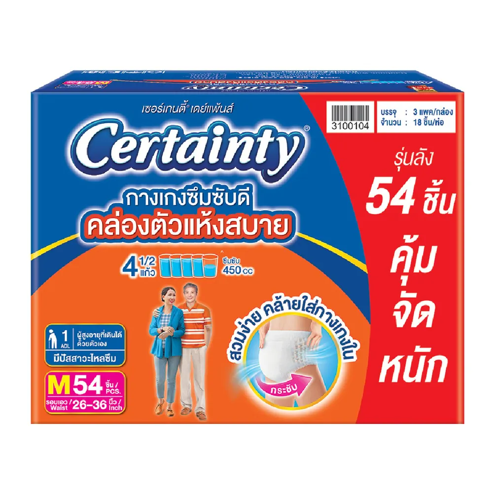 เซอร์เทนตี้ กางเกงผ้าอ้อมผู้ใหญ่ เดย์แพ้นส์ ขนาด M 54 ชิ้น