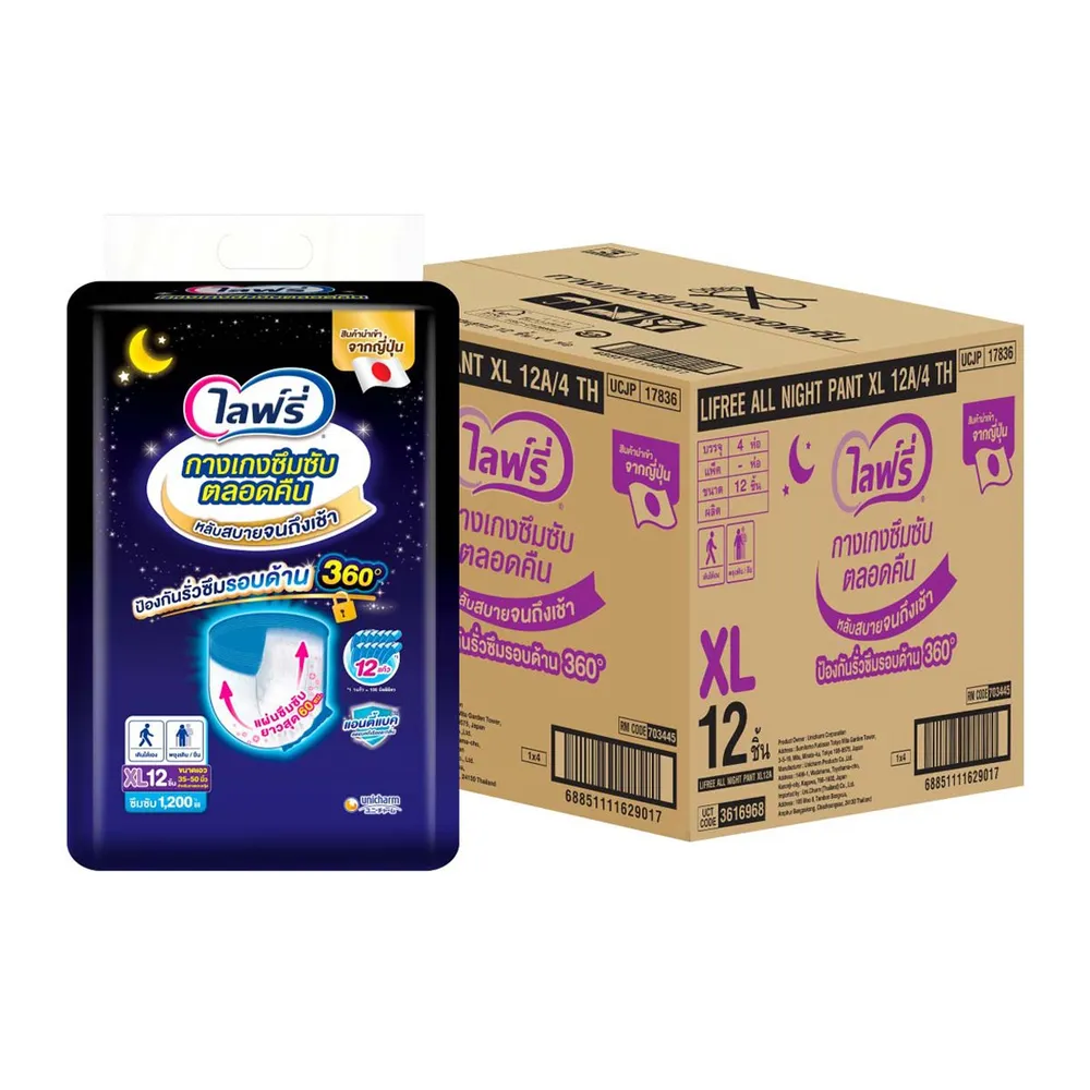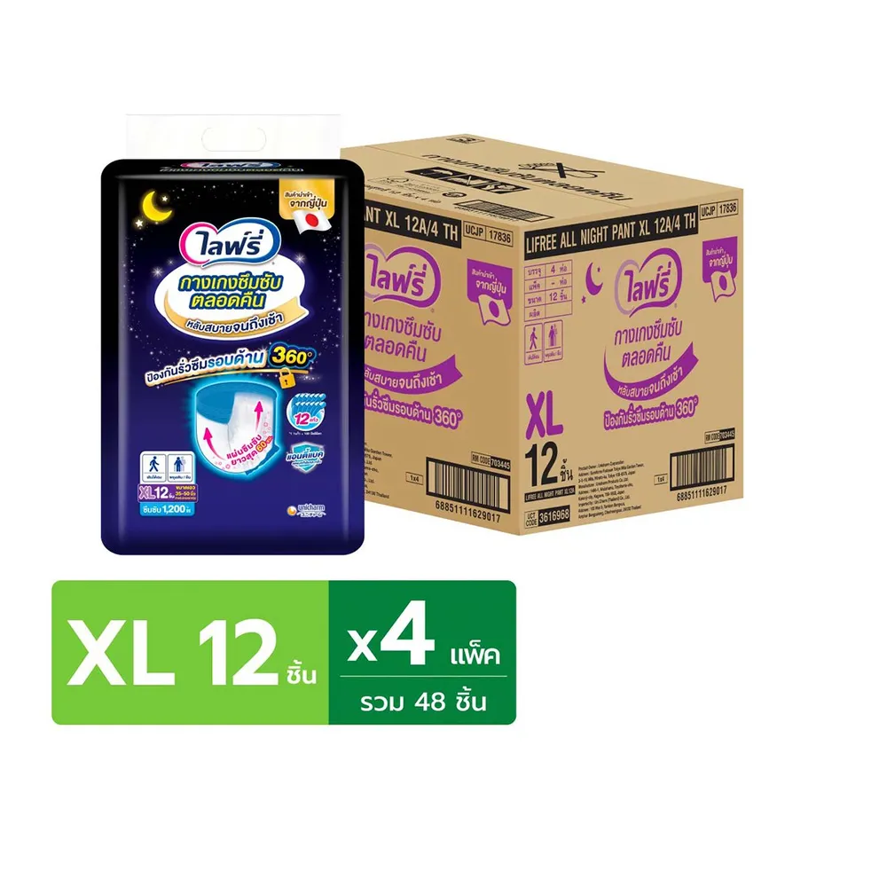 ไลฟ์รี่ กางเกงซึมซับตลอดคืน ขนาด XL 12 ชิ้น