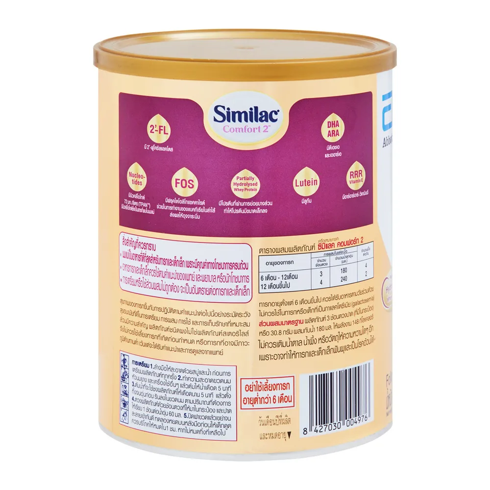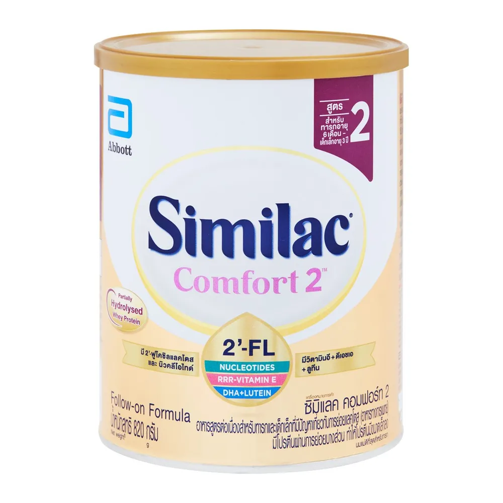 ซิมิแลค คอมฟอร์ท 2 อาหารทางการแพทย์ สำหรับเด็กอายุ 6 เดือน-3 ปี มี 2&#39;-FL นิวคลีโอไทด์ วิตามินดี อี ลูทีน และโปรตีนนมที่ผ่านการย่อยบางส่วน เหมาะสำหรับทารกที่มีปัญหาเกี่ยวกับการย่อยแลคโตส เช่น อาการท้องเสีย ท้องอืด อาการอึดอัดไม่สบายท้อง<br />