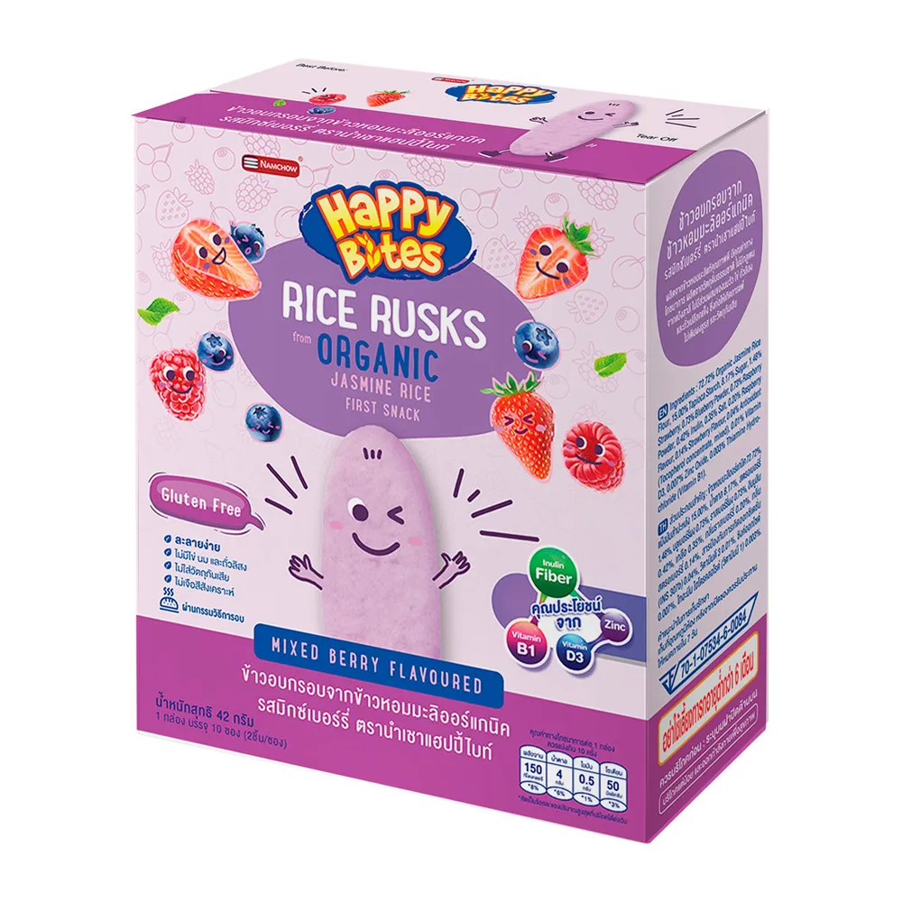 ให้เด็กๆ ได้เอร็ดอร่อย พร้อมฝึกฝนพัฒนาการในการหยิง จับ และเคี้ยวด้วย นำเชา แฮปปี้ไบท์ ข้าวอบกรอบจากข้าวหอมมะลิออร์แกนิค รสมิกซ์เบอร์รี่ ผลิตภัณฑ์ขนมอบกรอบคุณภาพจากแบรนด์ แฮปปี้ไบท์ ที่ผลิตจากวัตถุดิบคุณภาพดี ผ่านกรรมวิธีการผลิตที่ได้มาตรฐาน มีคุณประโยชน์ทางโภชนาการหลากหลาย เช่น วิตามินบี 1 วิตามินดี ซิงค์ เหมาะกับเด็กอายุ 6 เดือนขึ้นไป<br />