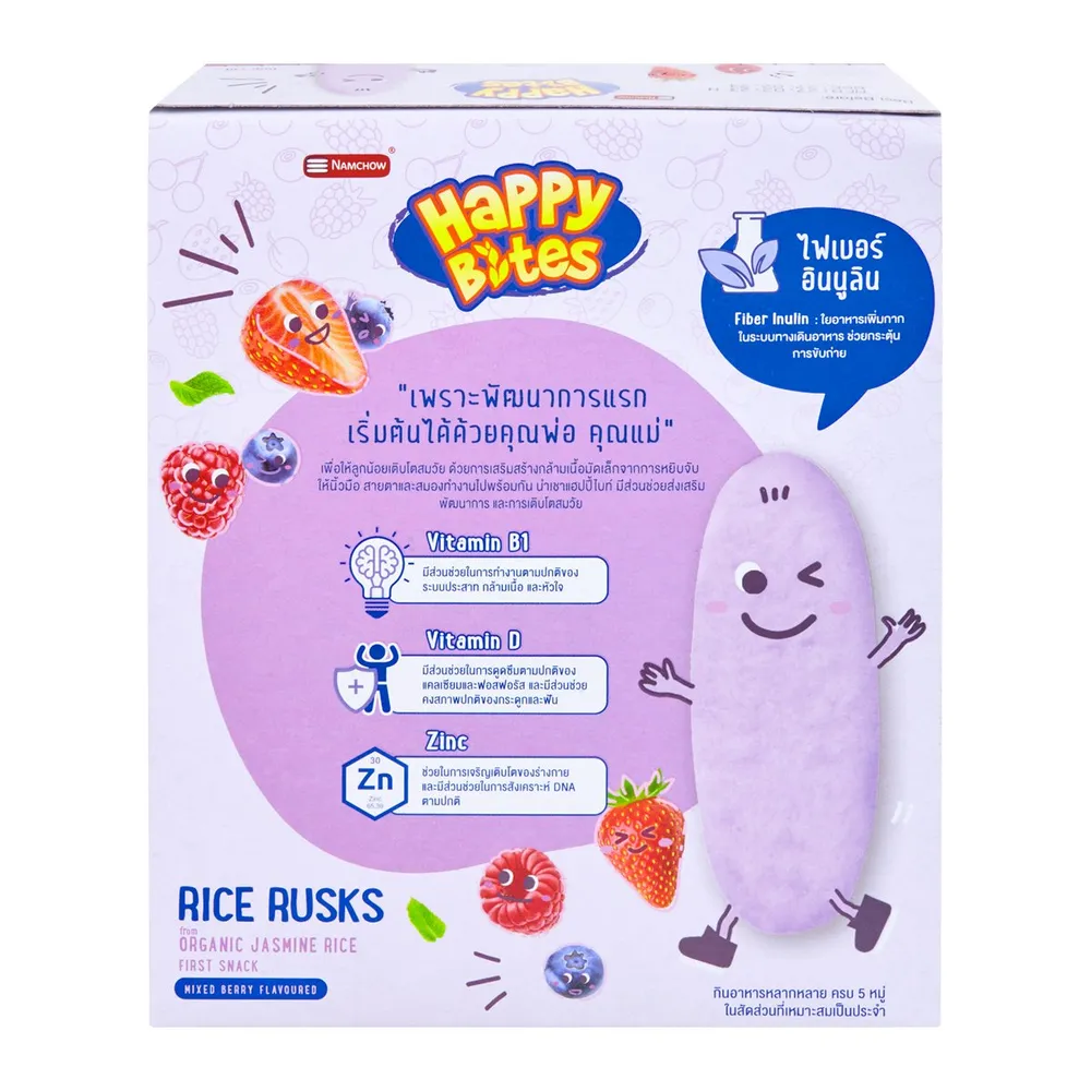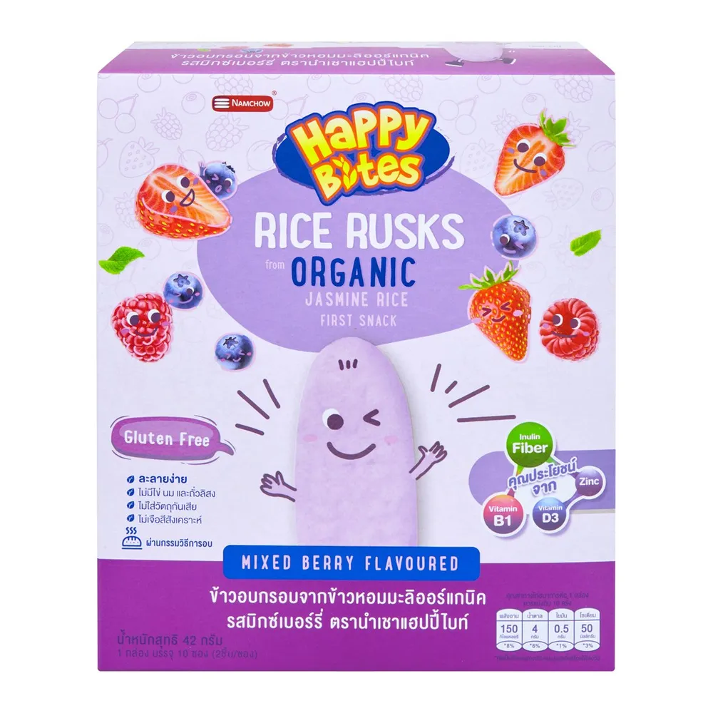 นำเชา แฮปปี้ไบท์ ข้าวอบกรอบจากข้าวหอมมะลิออร์แกนิค รสมิกซ์เบอร์รี่ 42 ก.