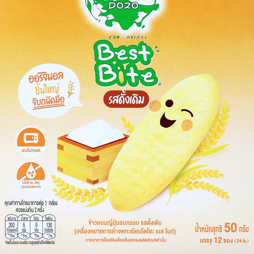 โดโซะ เบสไบท์ ข้าวหอมญี่ปุ่นอบกรอบสำหรับเด็ก รสดั้งเดิม 50 ก.